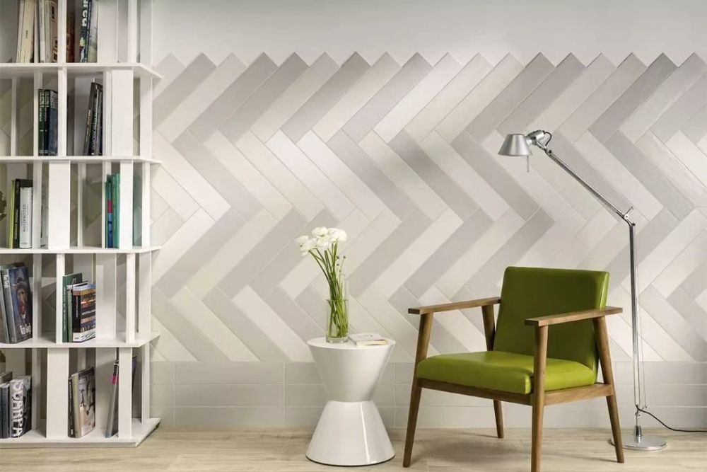 与木地板铺贴方法一致,瓷砖也有人字型铺贴法,这类铺贴方法视觉上形成一种错位,非常的时尚美观,但这类特殊铺贴方法人工价格稍高,要在动工前核算人工费用、美缝费用。