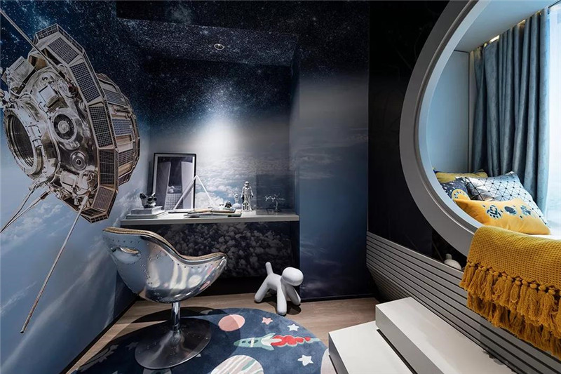 本案设计师凝萃青山湖的人文气息,将森林湖水的妙趣横生纳入空间。通过色彩、质感、功能、艺术的家具搭配,将日常生活的闲适乐趣,大胆地以戏剧方式展开,彰显居室格调。