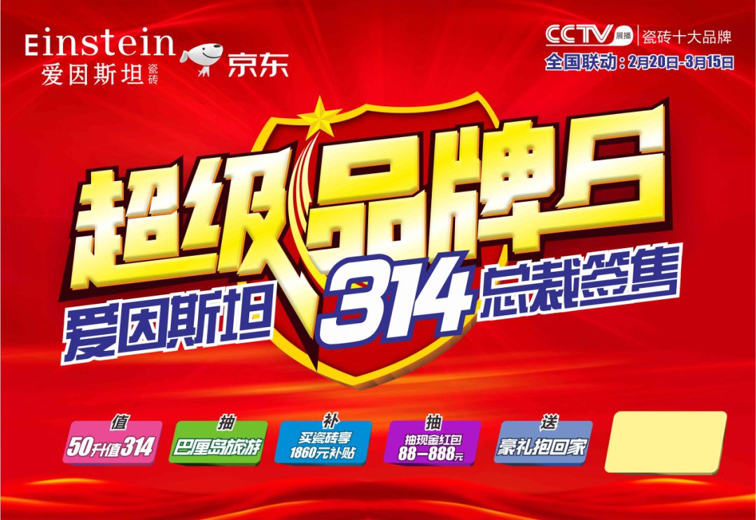 3月14日,爱因斯坦瓷砖品牌日,总部携全国终端门店,开启“百城在线疯抢瓷砖”活动。