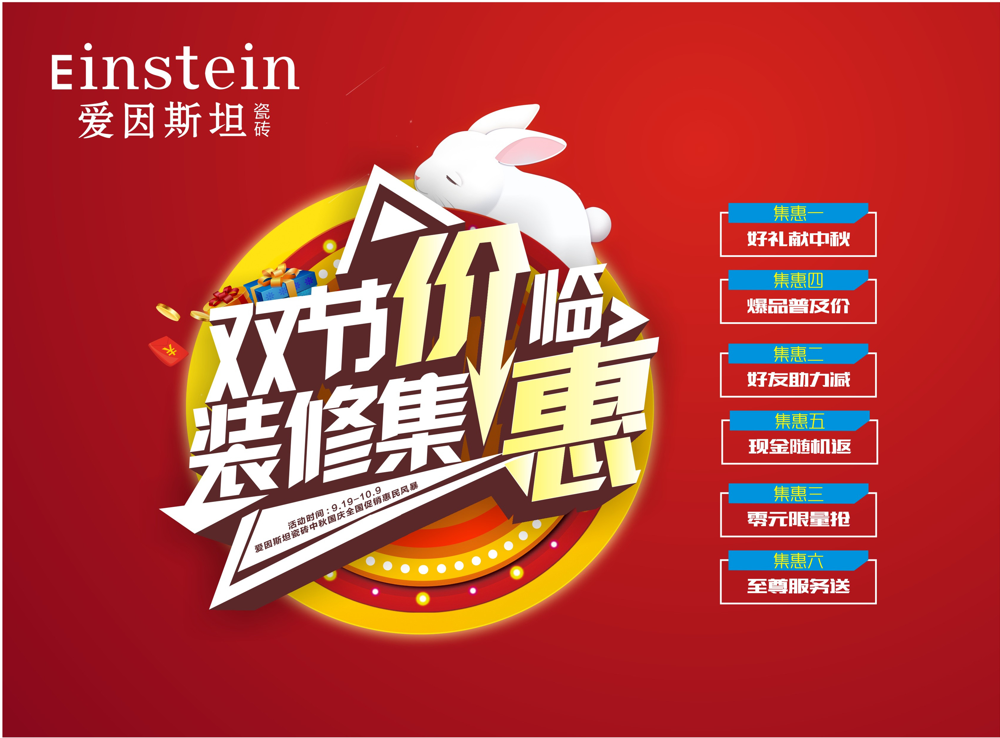 9月19日,“双节价临 装修集惠”爱因斯坦瓷砖中秋国庆全国促销惠民风暴正式开启!全国22城联合出击,收获喜人业绩。