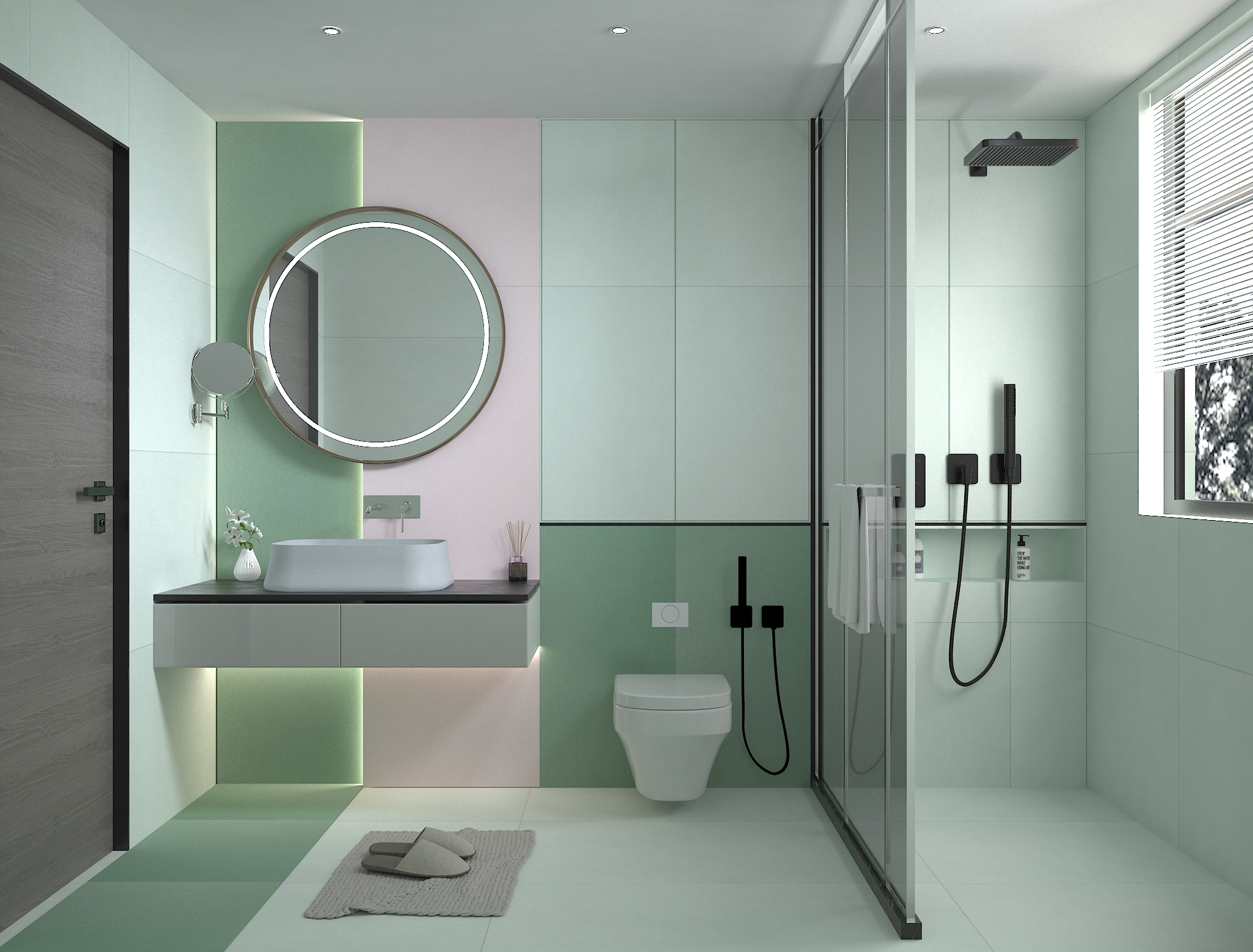 烟青绿和抹茶绿同色系的搭配,呈现出渐变的层次感,更规律,更优美。让空间既显格调又显高级。