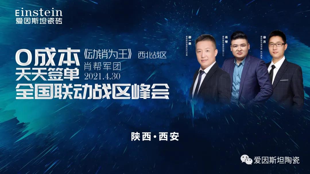 4月30日,爱因斯坦瓷砖“0成本天天签单”全国联动峰会西北战区,在陕西西安隆重召开!爱因斯坦瓷砖执行总裁邵一森、动销CEO肖帮、爱因斯坦瓷砖商学院执行院长徐方、西安运营中心负责人严新成,以及来自西北区域经销商代表约20人参加了本次会议,全方位研讨了新型营销模式下,如何利用差异化营销打破同质化竞争,抢占更多的市场份额。