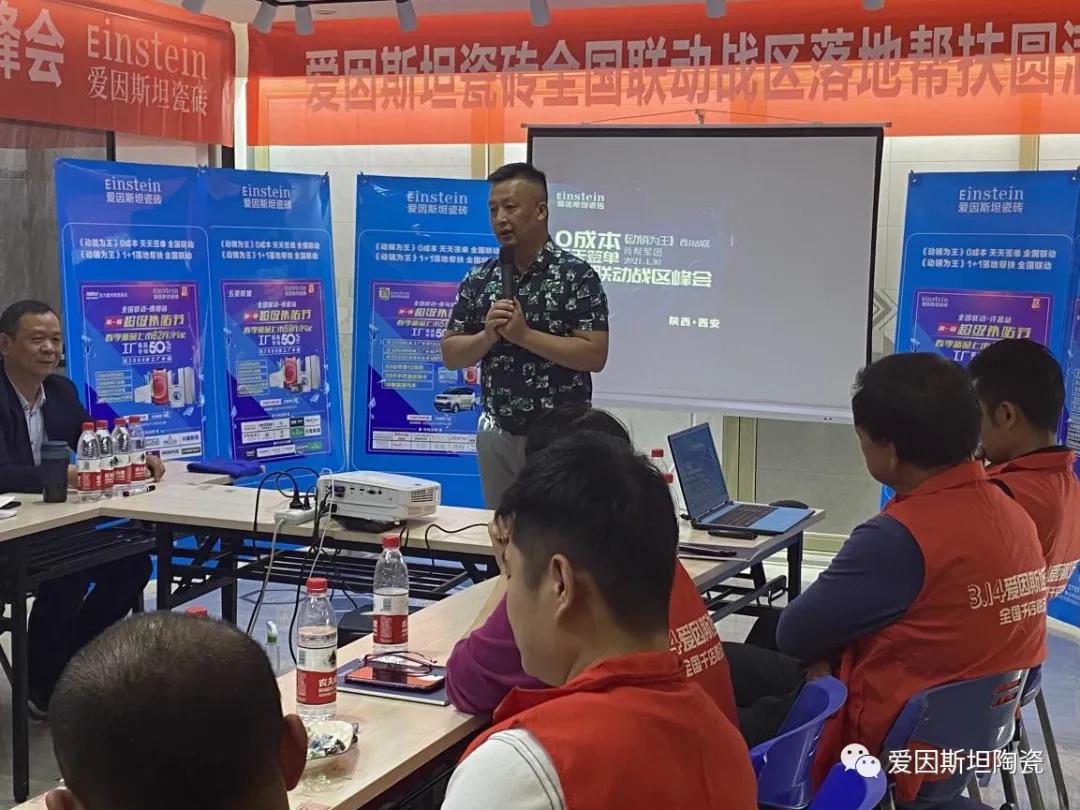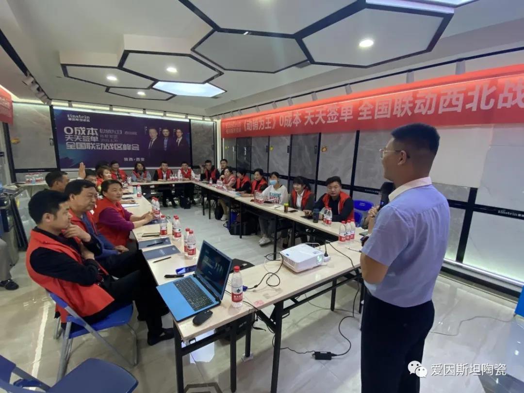 会议上,西安运营中心负责人严新成分析了现阶段,爱因斯坦瓷砖在西北区域的销售状况,并表示希望大家通过此次全国联动活动,让大家团结一致,再创佳绩!并期待所有家人们在总部帮扶军团的帮助下,一起共同学习,共同进步,共同成长,创造更加辉煌的未来。