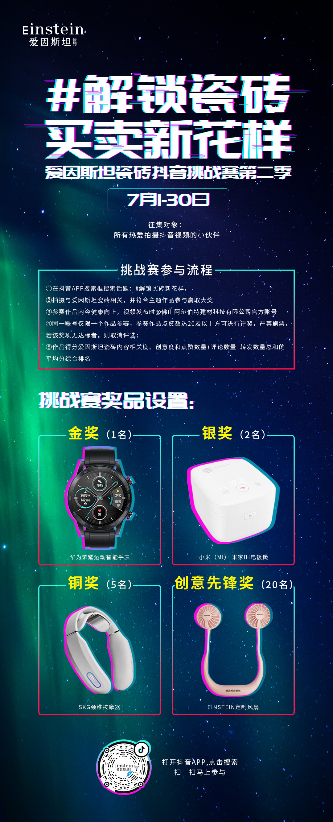 爱因斯坦瓷砖抖音挑战赛第二季全国开赛啦!