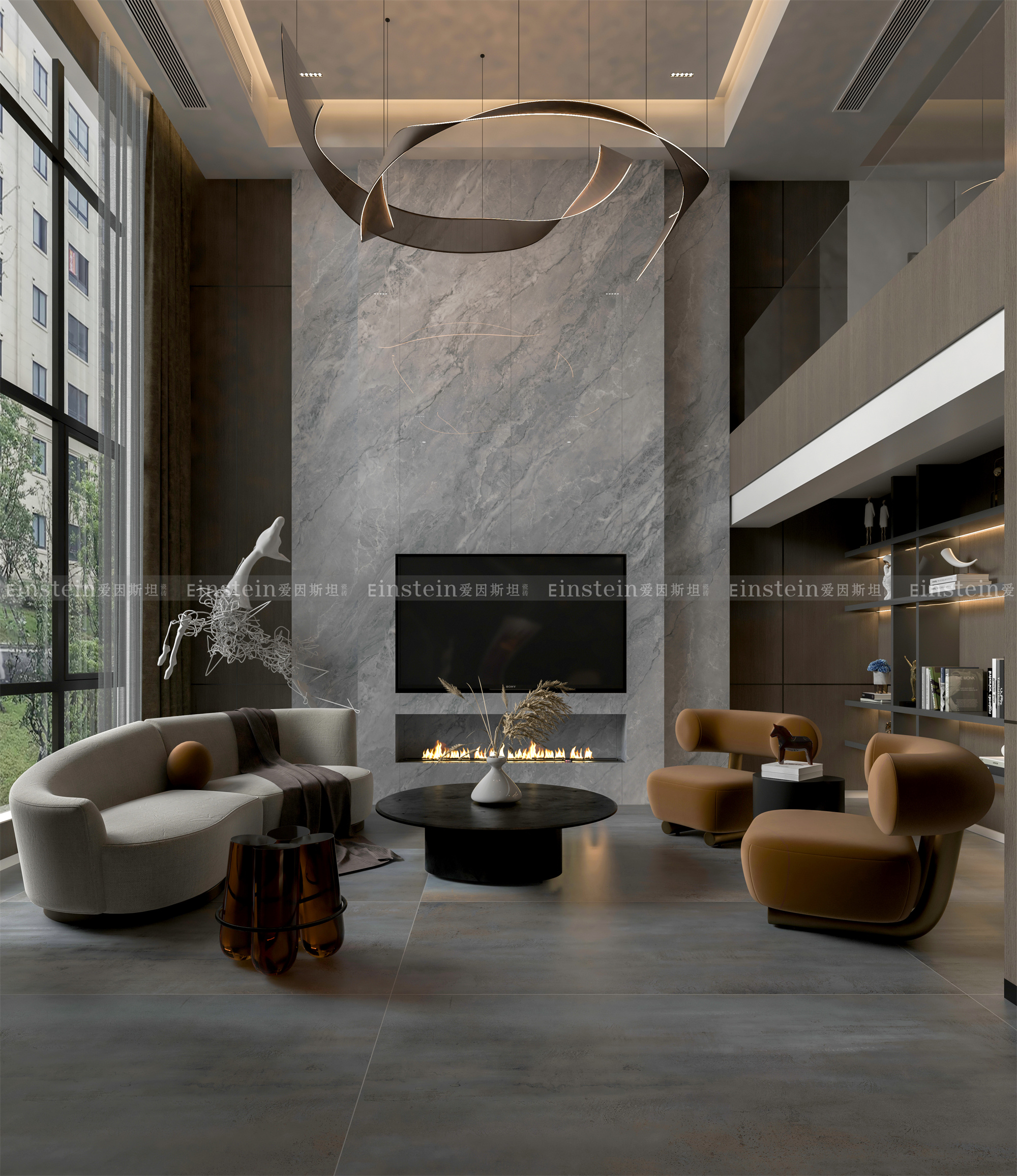 爱因斯坦瓷砖900x1800mm微水泥瓷砖,作为一种可在空间全面使用的新型瓷砖,风格简单自然却富有质感,与时下流行的侘寂风可谓绝配哦!
