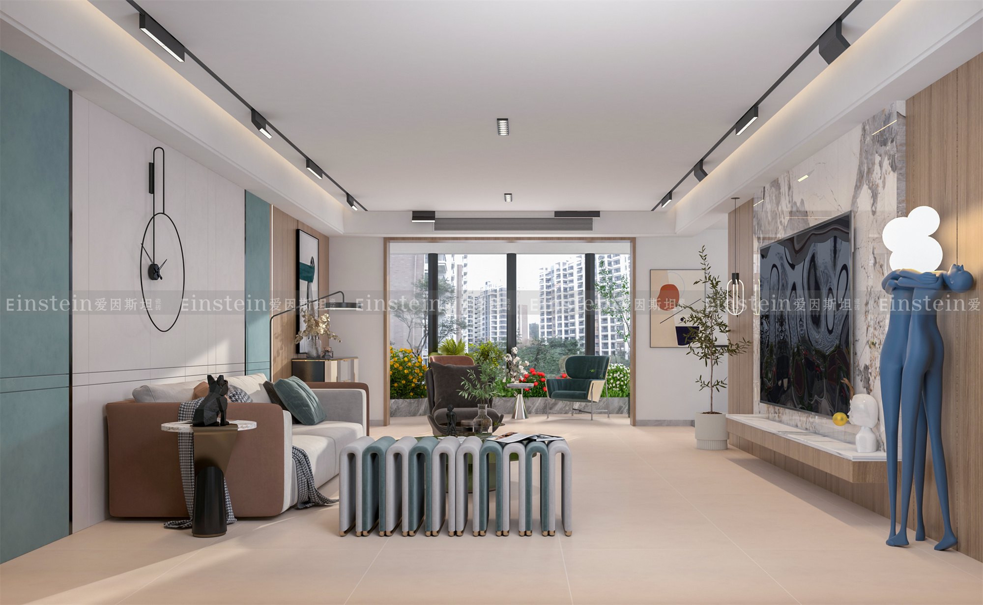 爱因斯坦素岩系列以莫兰迪色调为主的彩色微水泥瓷砖,涵盖粉色、绿色、蓝色、灰色等颜色。900x1800mm大规格,修长俊美,极致展现原石的大气磅礴之美,演绎空间大格局、大视野、大境界。