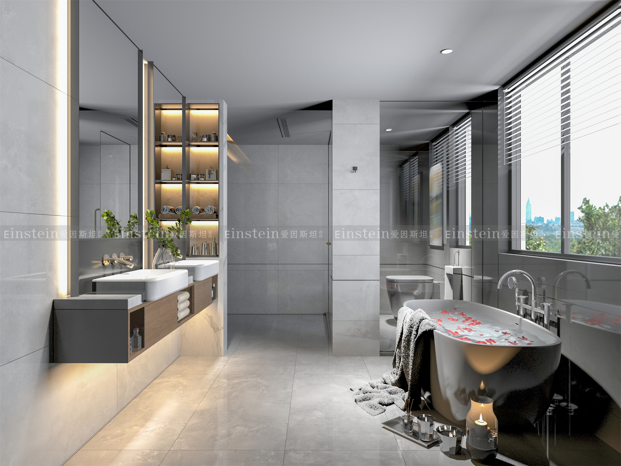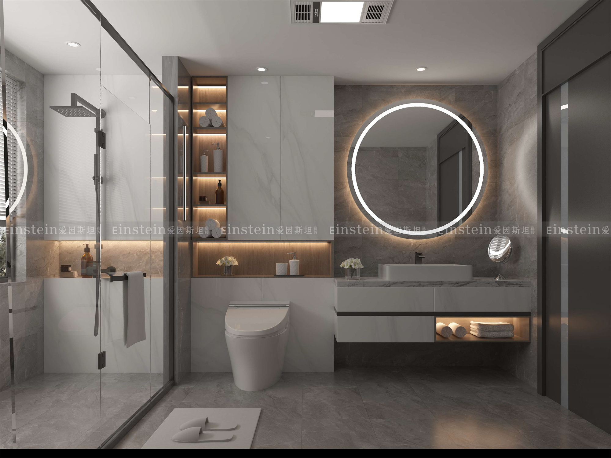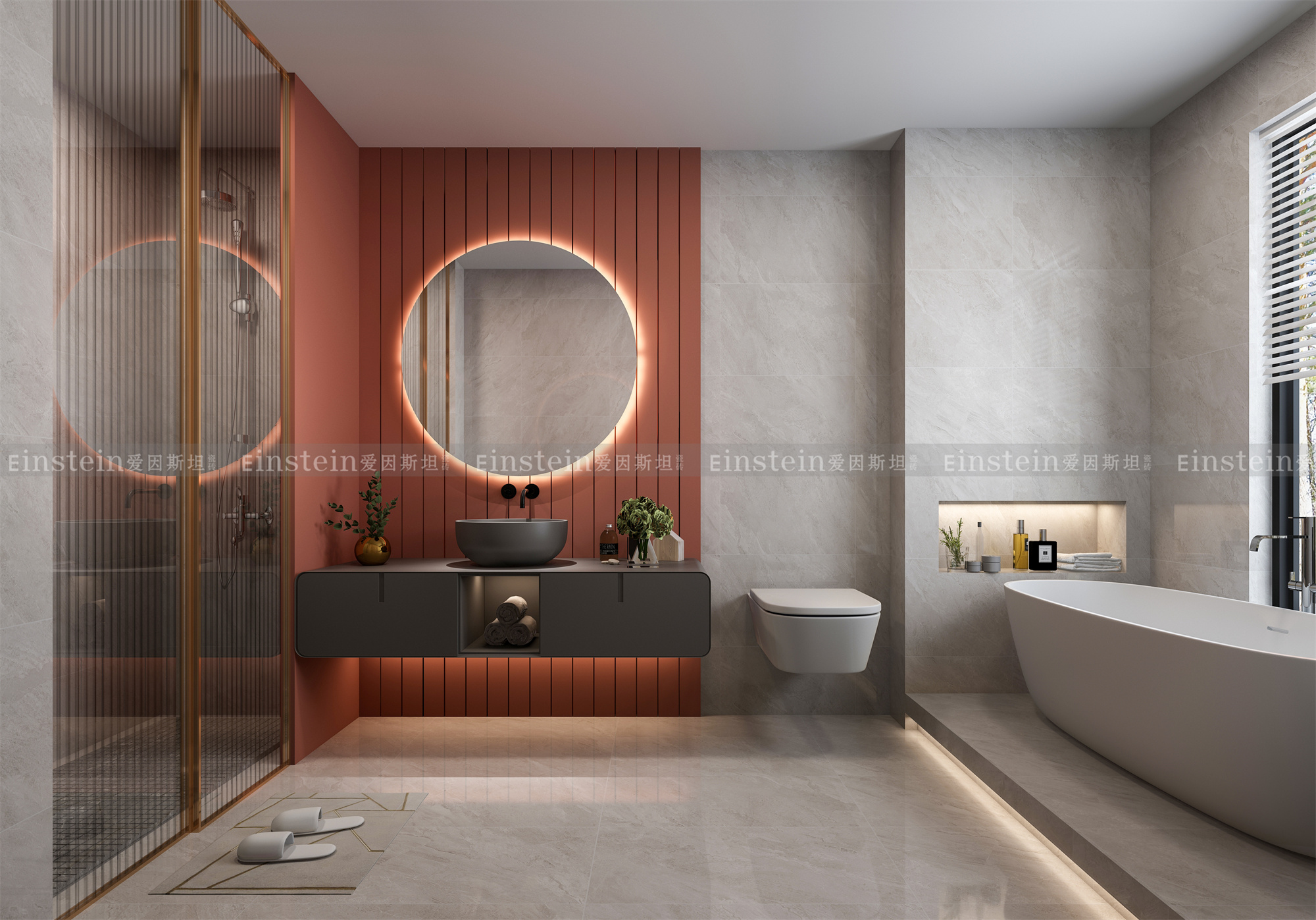 灰色是色感值为零的色彩,在卫浴间里搭配暖黄色的灯光,不仅能稀释空间的冷寂感,还能营造出了温馨的氛围感,给人更加温暖和体贴的舒适感。