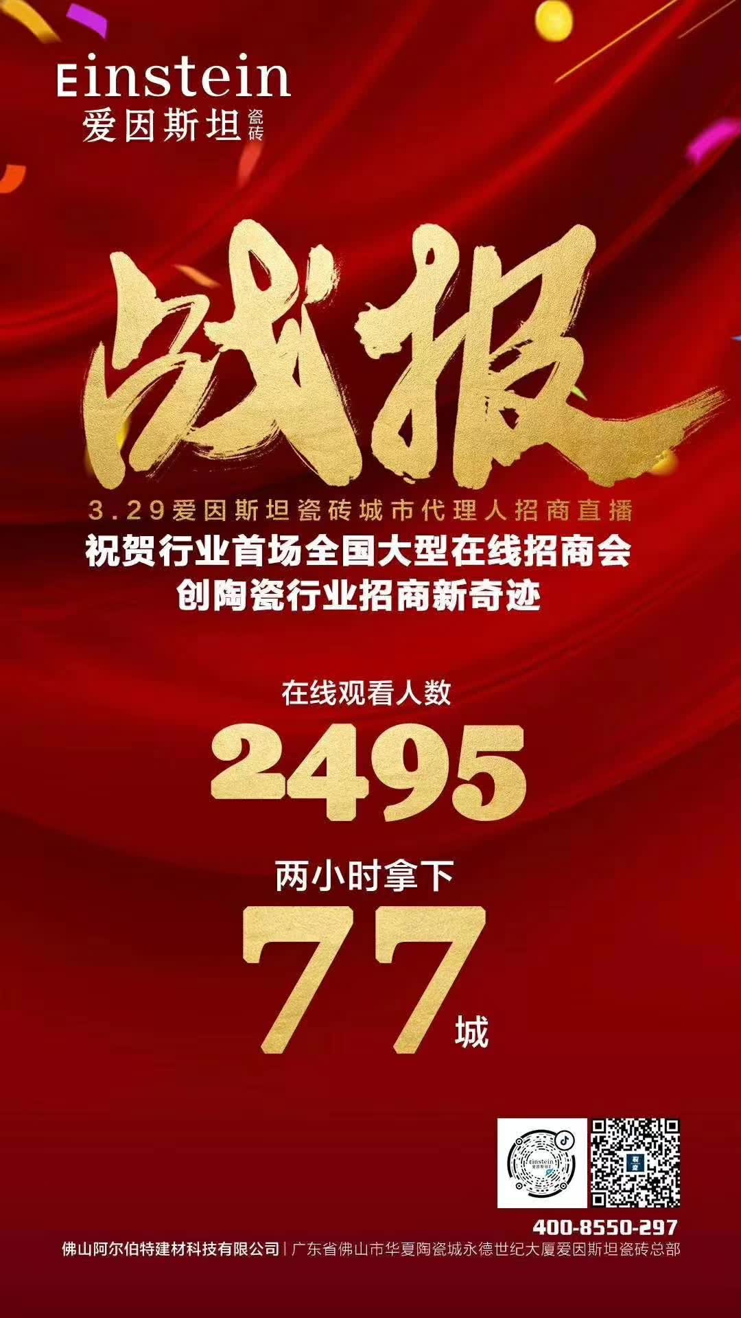 2020年初,受新冠疫情的影响,陶瓷行业陷入了前所未有的低迷,巨头蛰伏不动,中小品牌攻守难顾。一场线上招商直播打破了沉静已久的陶瓷业界,爱因斯坦瓷砖以2小时拿下77城这一彪悍的战绩,开创了陶瓷行业招商新模式,并创下陶瓷行业线上招商的先例。