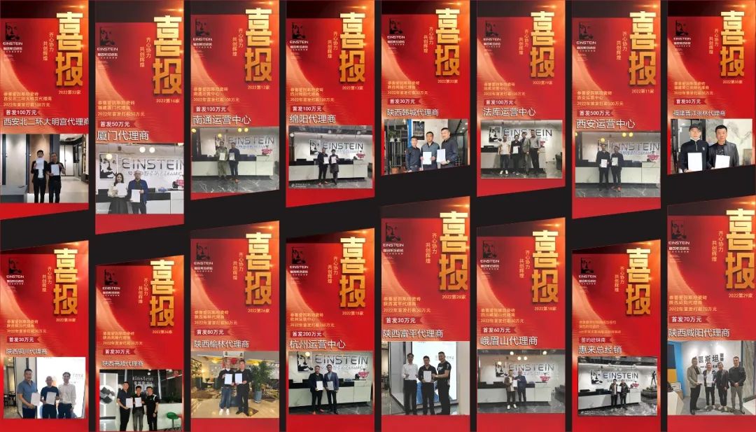 2022年,爱因斯坦瓷砖再次加足马力,加速战略版图强势扩张。2022年经销商年度首发突破2千万,全国招商活动也在紧锣密鼓地开展。爱因斯坦瓷砖在用一次次的创新与发展的突破,印证了品牌的实力,也获得了行业、经销商和消费者的信赖与支持。
